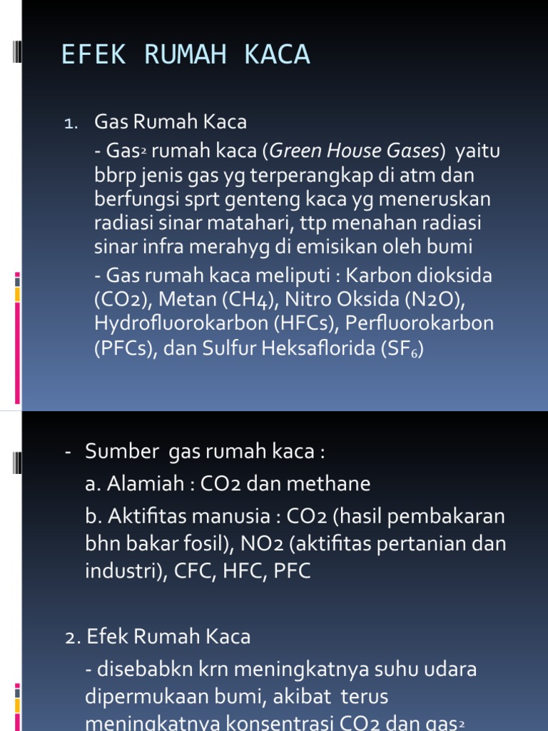 Adapun untuk penjelasan lebih dalam tentang efek rumah kaca, kamu bisa membaca pengertian dari para ahli, penyebab, efek yang timbul, dan cara menanggulanginya. Menurut ipcc (2007) dalam henson (2008), komposisi grk dalam troposfer adalah karbon dioksida (co2) 63%, nitrogen oksida (n2o) 6%, metana (ch4) 18%, serta cfcs dan hfcs sekitar 12%. Untuk beberapa kondisi mungkin menguntungkan, tetapi lebih banyak dampak merugikannya. This song is made by cholil, akbar and adrian (erk members). Selain itu membuat permukaan air di berbagai wilayah mengalami kenaikan.