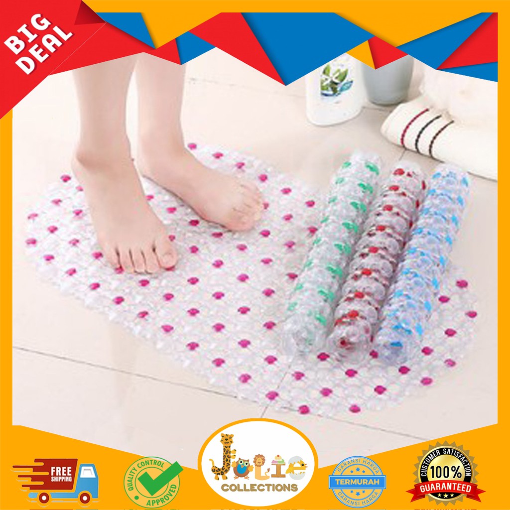 Enkei pvc bathroom mat anti slip keset kamar mandi penghisap suction. Akan tetapi, kondisi tersebut masih belum cukup. Kamar mandi sudah menggunakan lantai anti licin. Kamar mandi kering, sesuai istilahnya, selalu dalam keadaan kering saat tidak digunakan. Ada juga keset yang ditempatkan di depan kamar mandi, keset ini biasa disebut dengan keset anti slip atau bath mat. Jika ditaruh di kamar mandi basah, fungsi keset akan musnah karena ia menjadi sangat basah dan nggak bisa dipakai lagi. Pada kamar mandi kering ada pemisah yang jelas antara toilet dan shower/bathtub sehingga saat mandi, cipratan air hanya membasahi area shower atau bathtub saja. Karena itu penting sekali untuk menambahkan keset khusus toilet. Ukuran ini tidak terlalu kecil dan juga tidak terlalu besar. Tikar ukuran standar atau digulung? Barang wajib yang pertama adalah keset kamar mandi. Keset yang berwarna pink ini memiliki daya serap sempurna, sehingga dapat membuat lantai kamar mandi anda selalu kering. Beli keset microfiber tosca seharga | pengembalian mudah | 100% perlindungan pembayaran | pengiriman cepat.